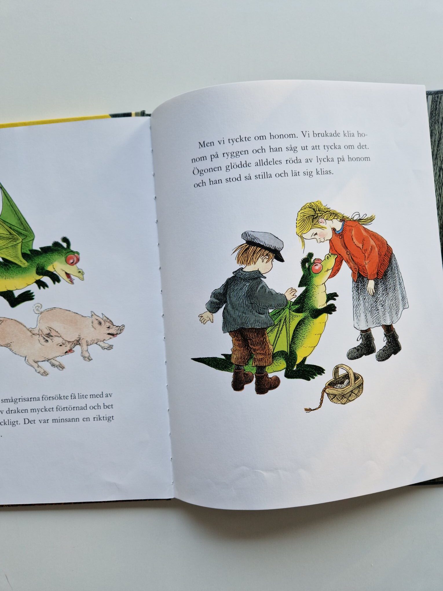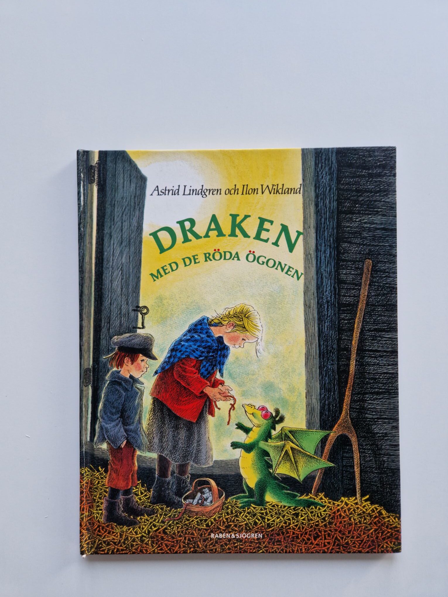 Draken med de röda ögonen är en söt och spännande berättelse om två syskon som en dag hittar ett märkligt ägg i ladan. Ur ägget kläcks en liten drake – en vänlig men ovanlig varelse med stora, röda ögon. Syskonen tar hand om draken i hemlighet och funderar över hur de ska göra. En ganska ovanlig Astrid Lindgren-berättelse. Ilon Wikland har illustrerat. Boken är ca 27 cm hög och i bra begagnat skick, det finns ett klistermärke med namn på första sidan och något blad är buckligt. Passar barn runt 3-6 år.