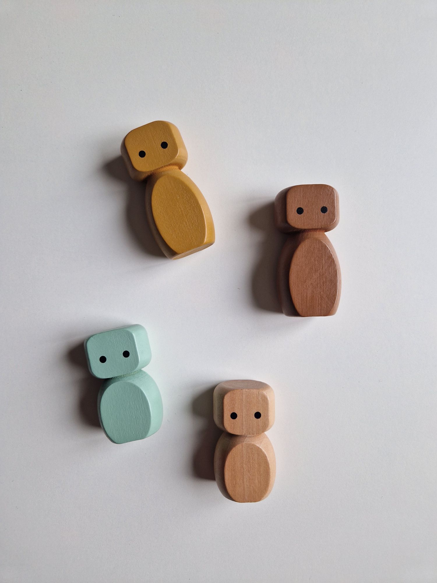 Klassiska små träfigurer från Brio. Ca 7 cm höga och perfekta för lek eller som del av ett dockhus/universum. Minimalistisk design som håller över tid. Fint skick på alla. Lätta att matcha med andra träleksaker.