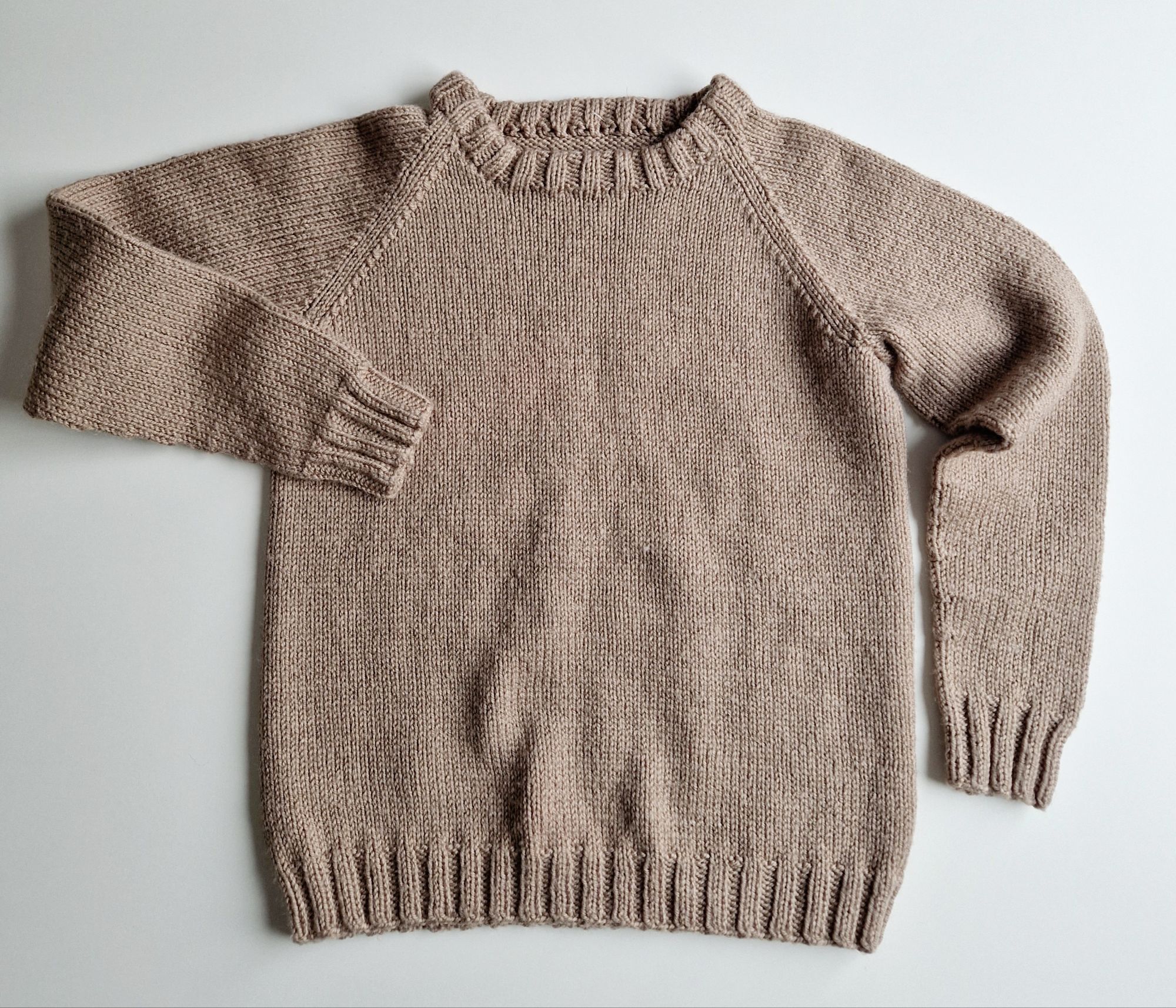 En tröja i fin nyans- lite stel men i bra begagnat skick. Ull eller ullblandning. Är nog ull-blandning.