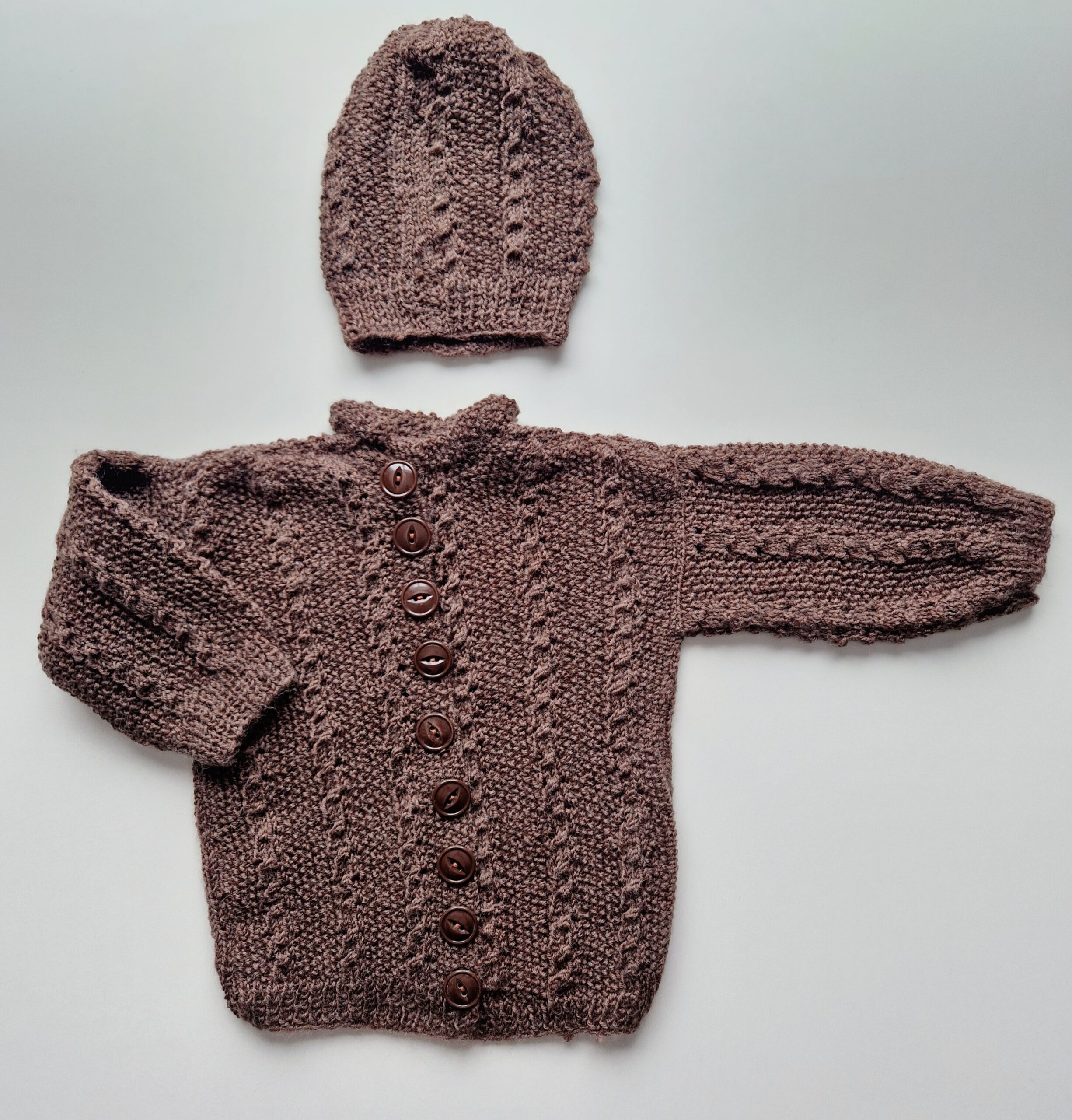 Handgjort och aldrig använt :(. Nu söker setet ny liten ägare. Är mest 74 men baggy 68 och tight uppknäppt 80 funkar. Mjukt och kan vara ull-blandning men inte bara ull och kanske inte ull alls. Perfekt skick.