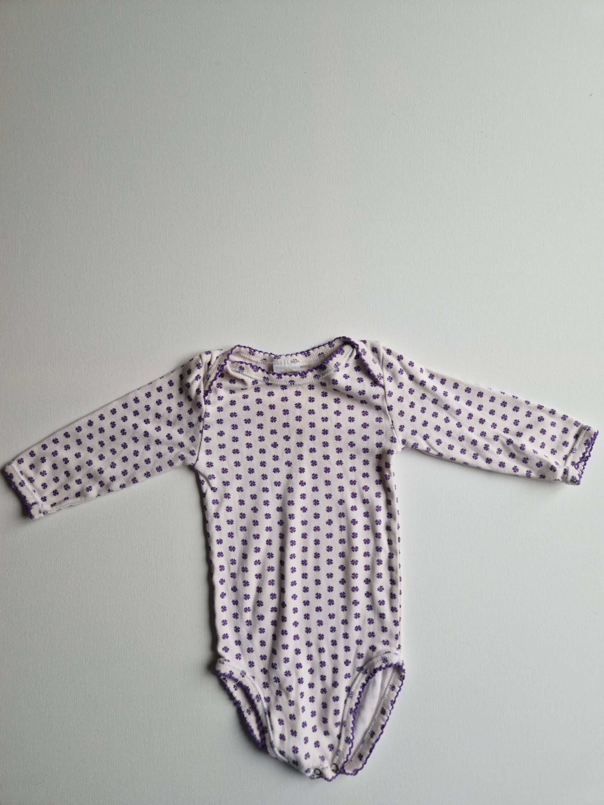 Bra att veta: fyrklöver i lila, tryckknappar och bra upptill så lätt att få över huvudet