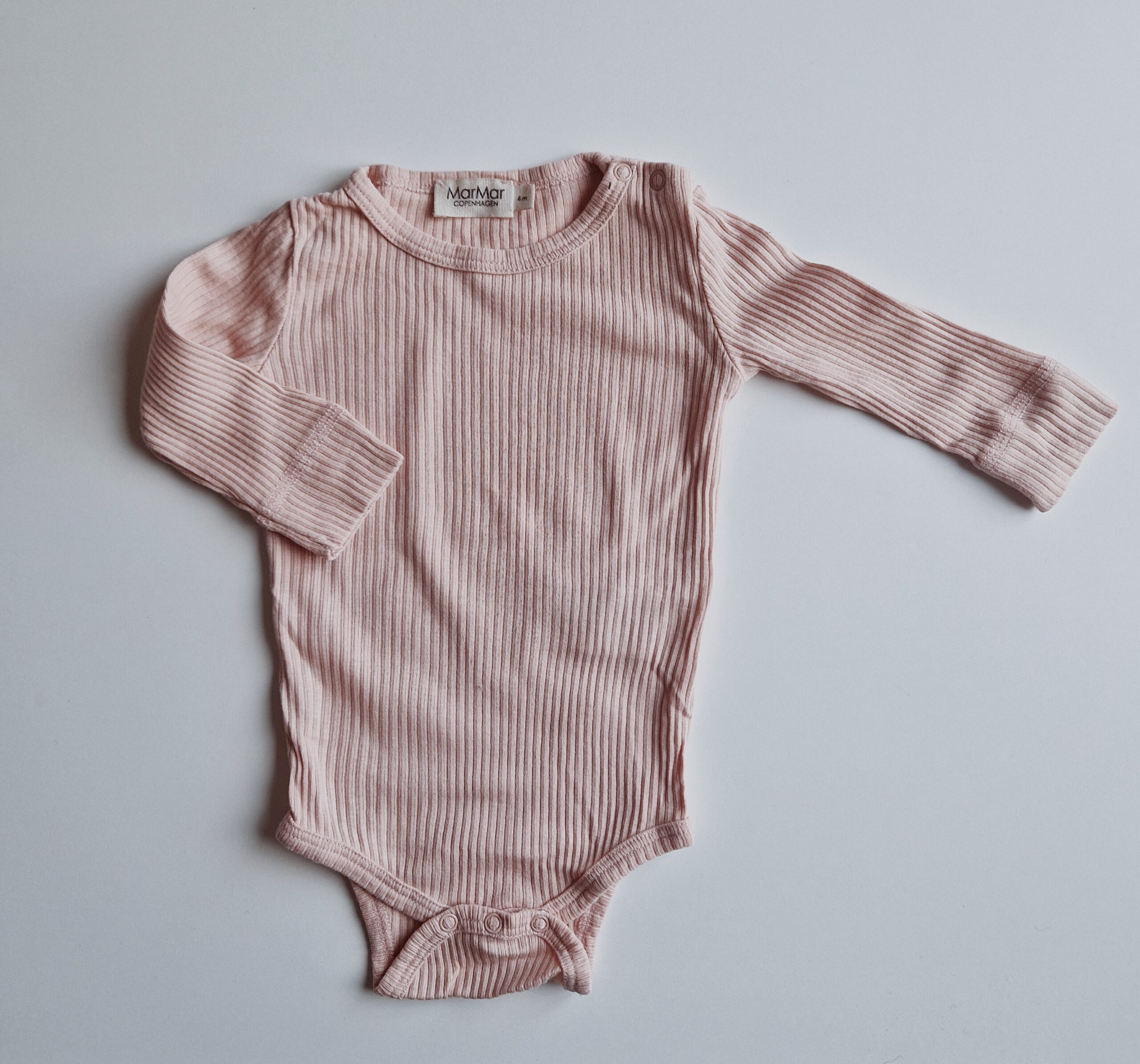 Body i fint skick. Ribbad modalblandning i ljusrosa ton.