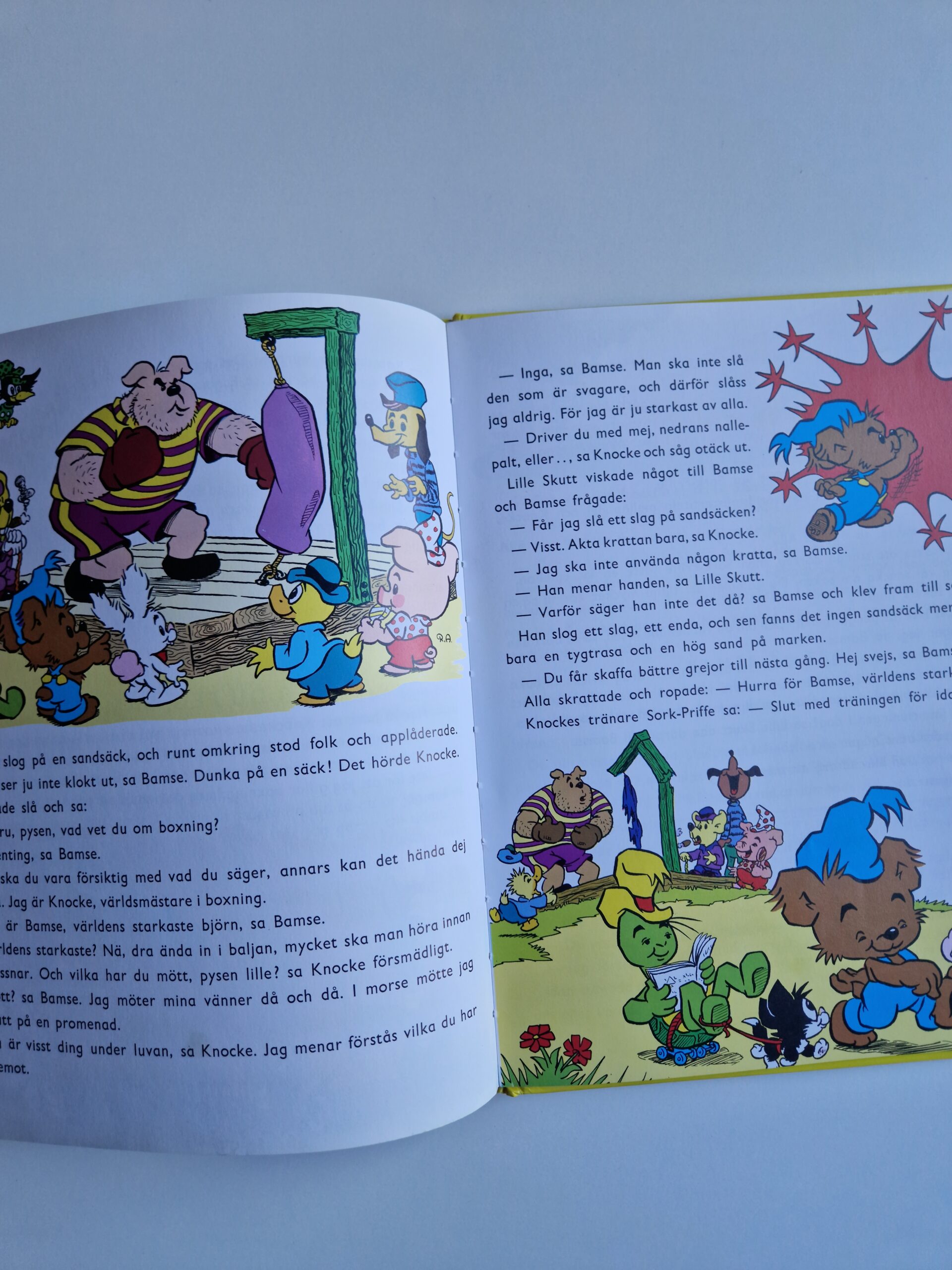 Stor klassisk bok med fem sagor om Bamse. Skulle säga 6-9 år för det är ganska mycket text. En saga per kväll kanske? Skicket är preloved men ändå bra begagnat skick. Finns någon fläck och är lite repig men som sagt- bra begagnat skick.