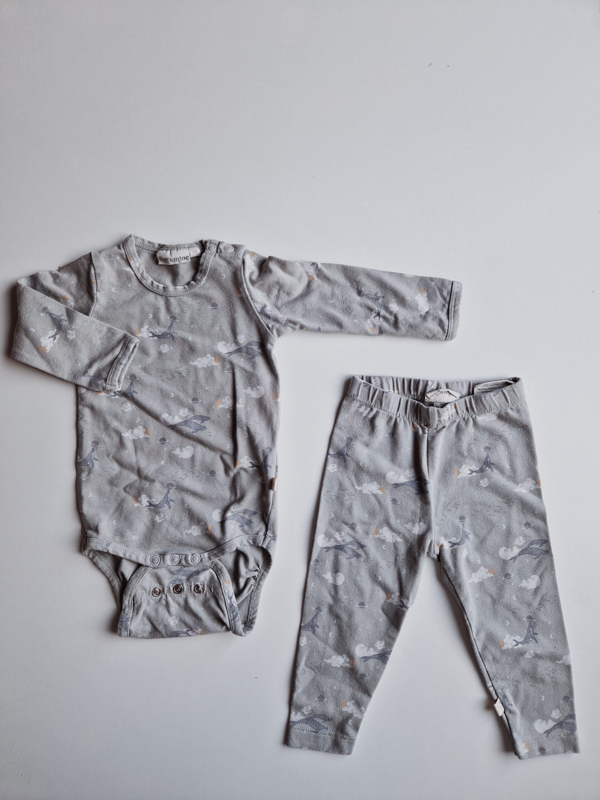 Set i okej begagnat skick. Ytludd men mjukt och skönt, blandning av bomull och modal. Praktiska tryckknappar både upptill och i grenen samt justerbar knäppning så bodyn kan användas länge.