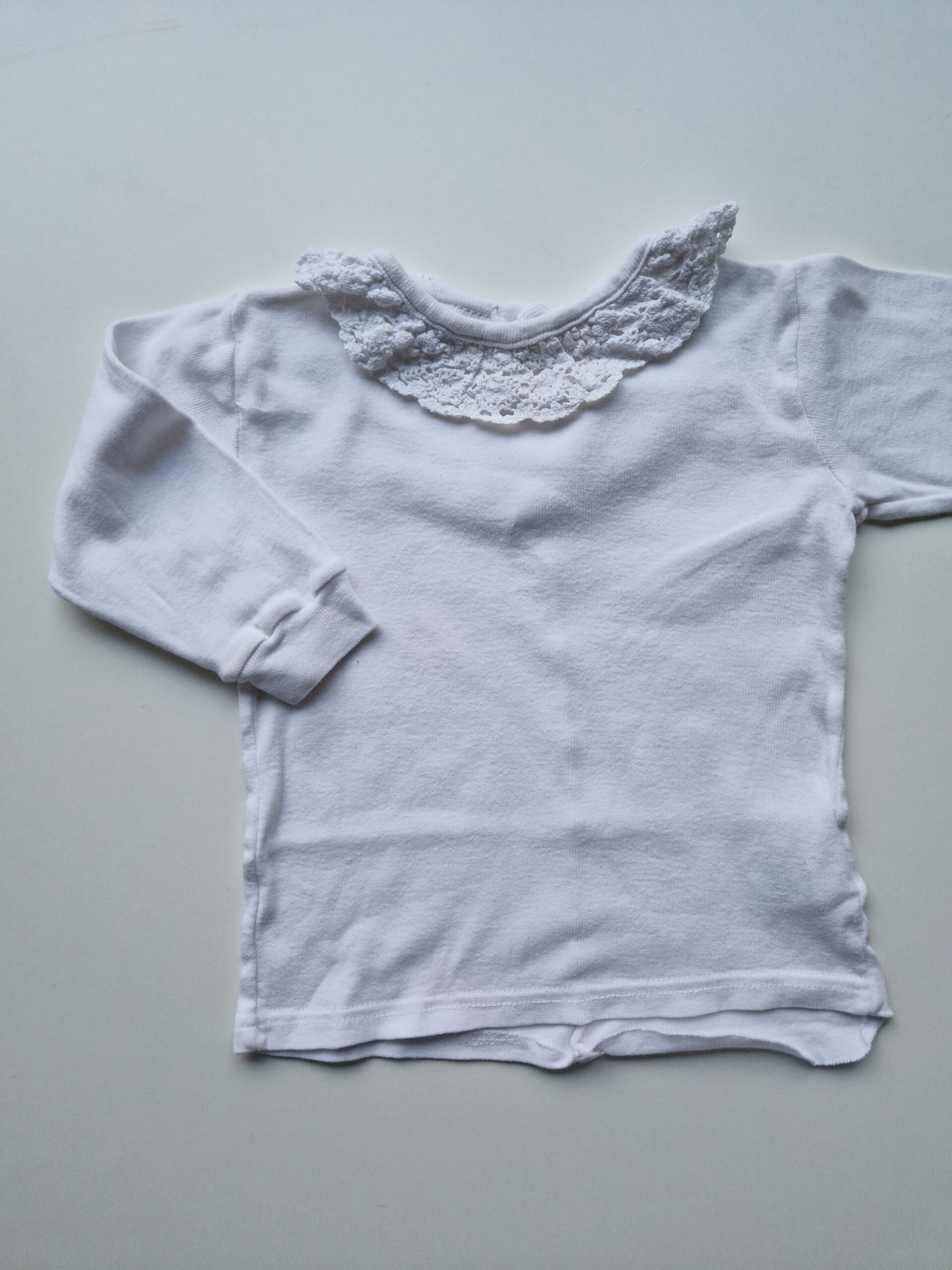 Gamla H&M med spets, volang och resår i ärmarna. Mjuk bomull. Fint vintageskick. Uppläggningen nertill behöver strykas till.